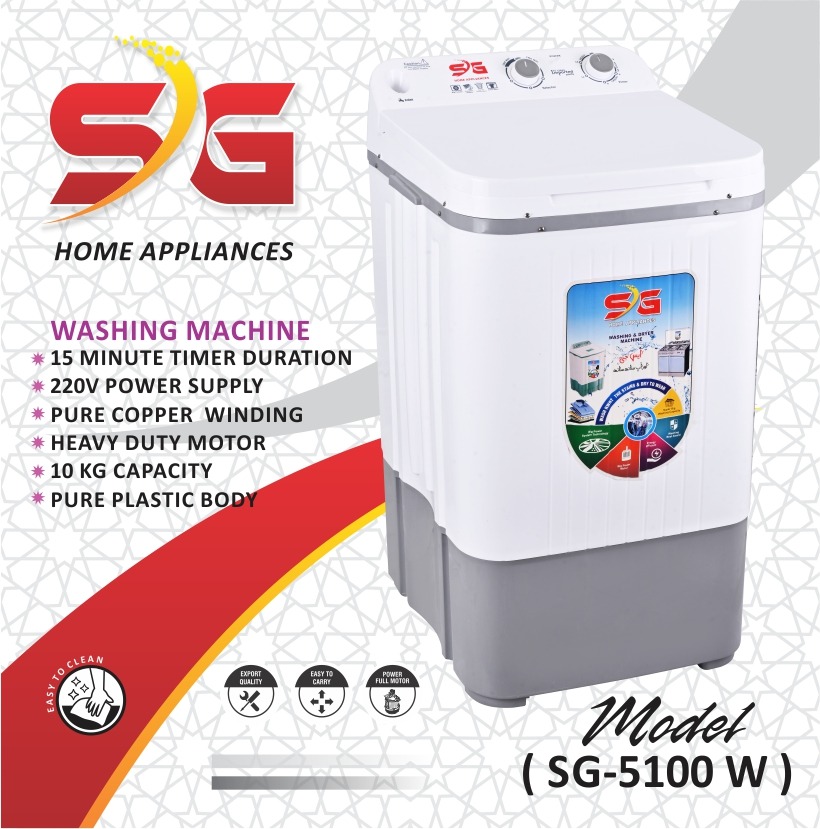 Introducing the SG Washing Machine Top Load 80 Ponds (WM-5100), a high-quality washing machine that is perfect for your home. With a large capacity of 10 to 15 KG, this top load washing machine is perfect for families of all sizes. The energy-saving and spin washing modes make it an eco-friendly choice, while the imported China copper motor ensures durability and longevity. The noiseless feature makes it perfect for use in any home. The maximum spin speed of 1000 – 2000 RPM ensures that your clothes come out clean and fresh every time. The white color family and plastic drum type make it a stylish addition to any home. With its top load design, this washing machine is easy to use and perfect for busy families. Order yours today and experience the convenience and efficiency of the SG Washing Machine Top Load 80 Ponds (WM-5100).