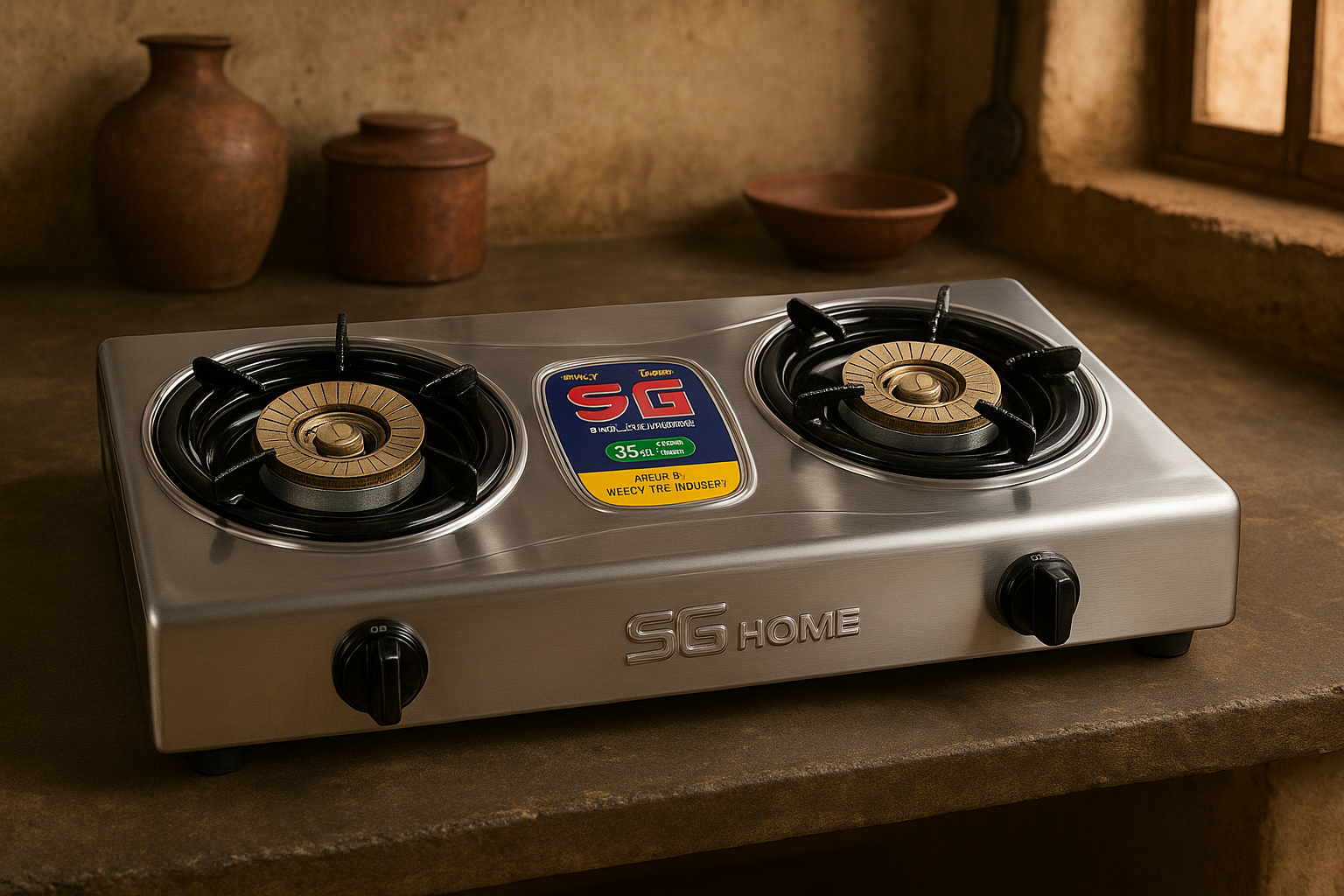 The SG-1 Stainless Steel Gas Stove from SG Home Appliances is a premium quality, energy-efficient cooking solution designed for durability and performance in every kitchen—especially suited for desi households.